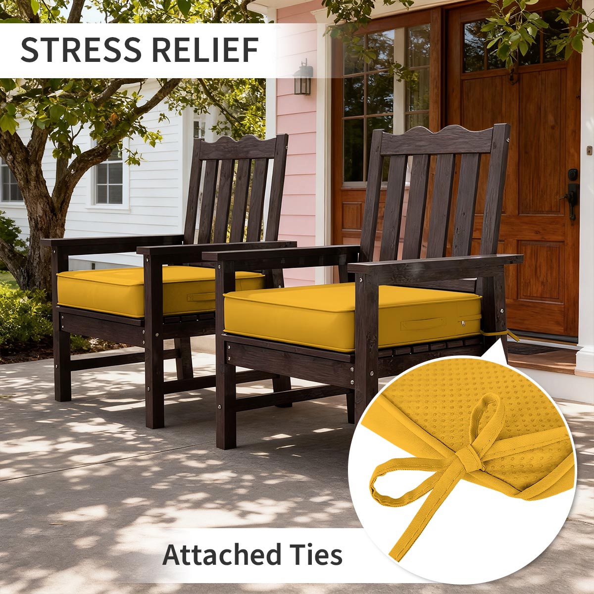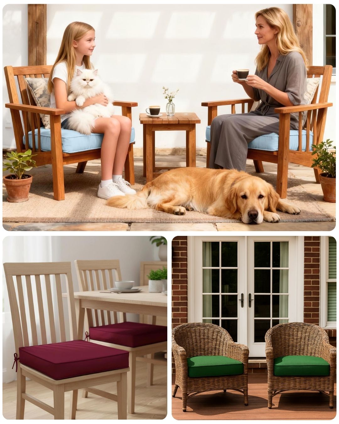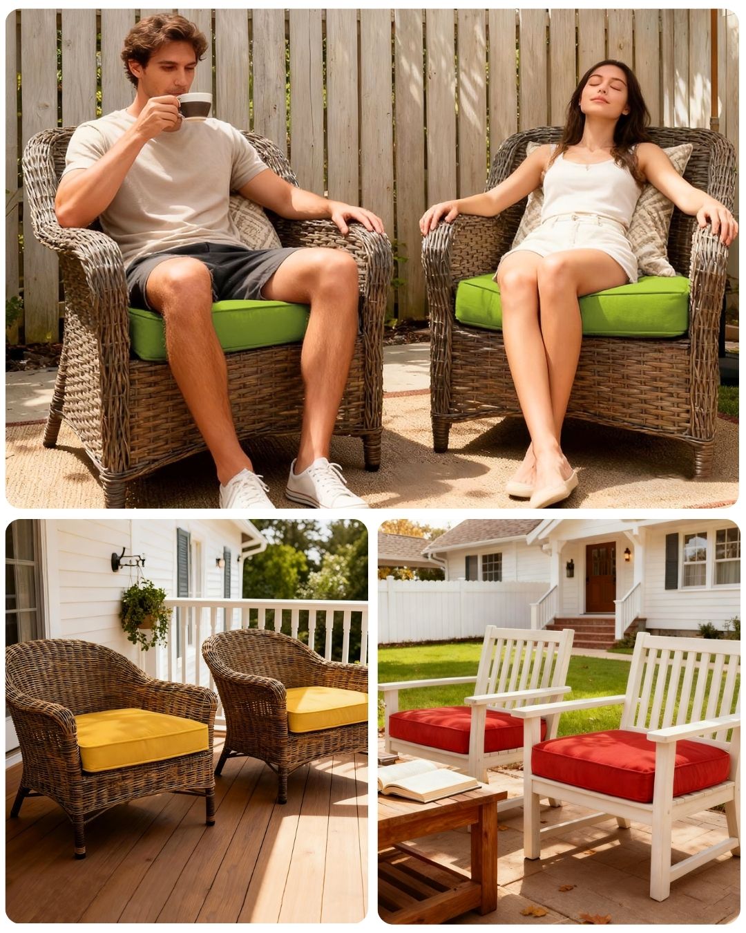 Bring comfort to your patio dining or garden seating with our plush seat pads. Each cushion features 3"/4"/5" thick padding for lasting support, water-resistant fabric for outdoor durability, and tie straps to keep it perfectly in place. Whether for morning coffee or evening gatherings, these cushions add both comfort and style to your outdoor living.
