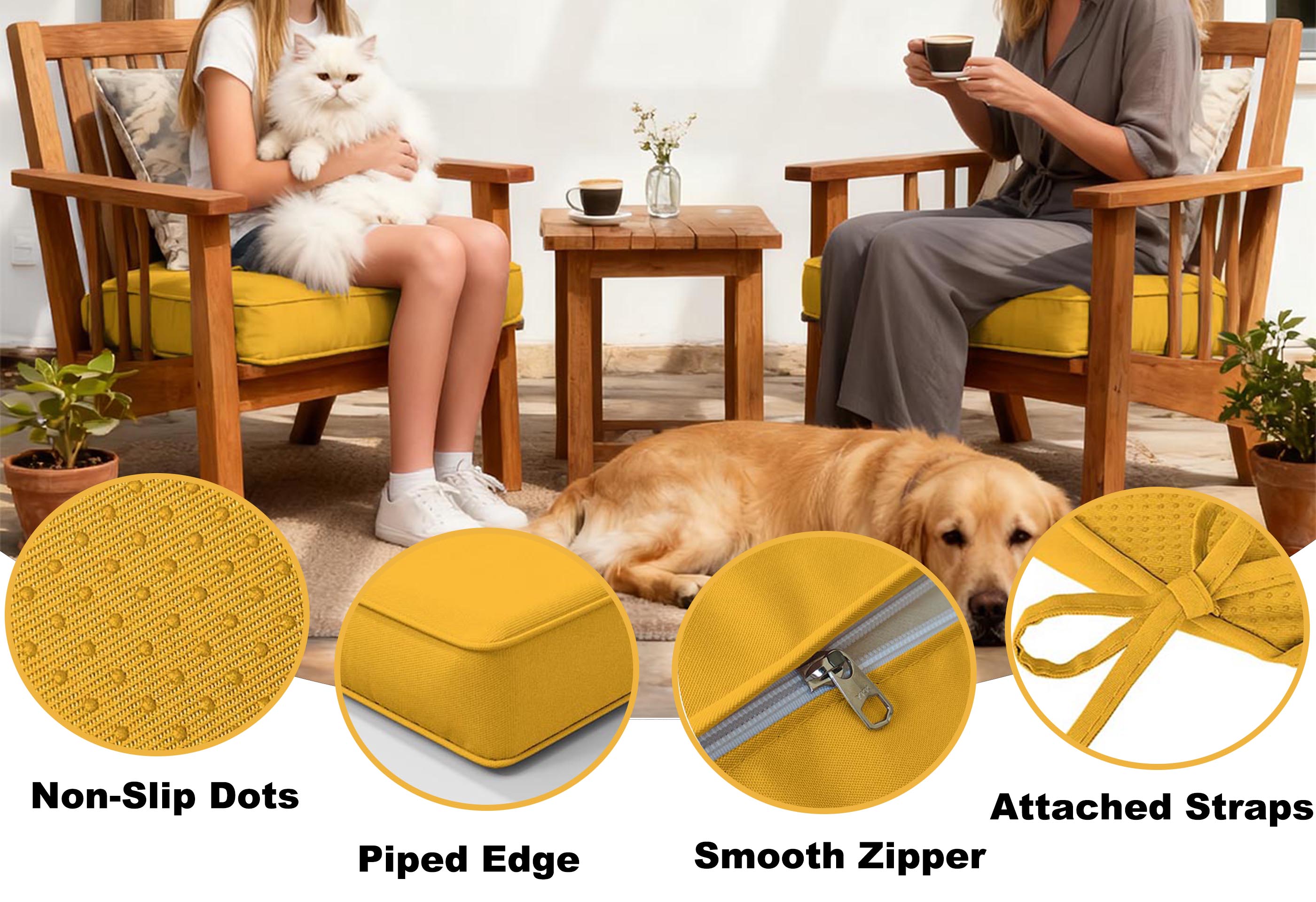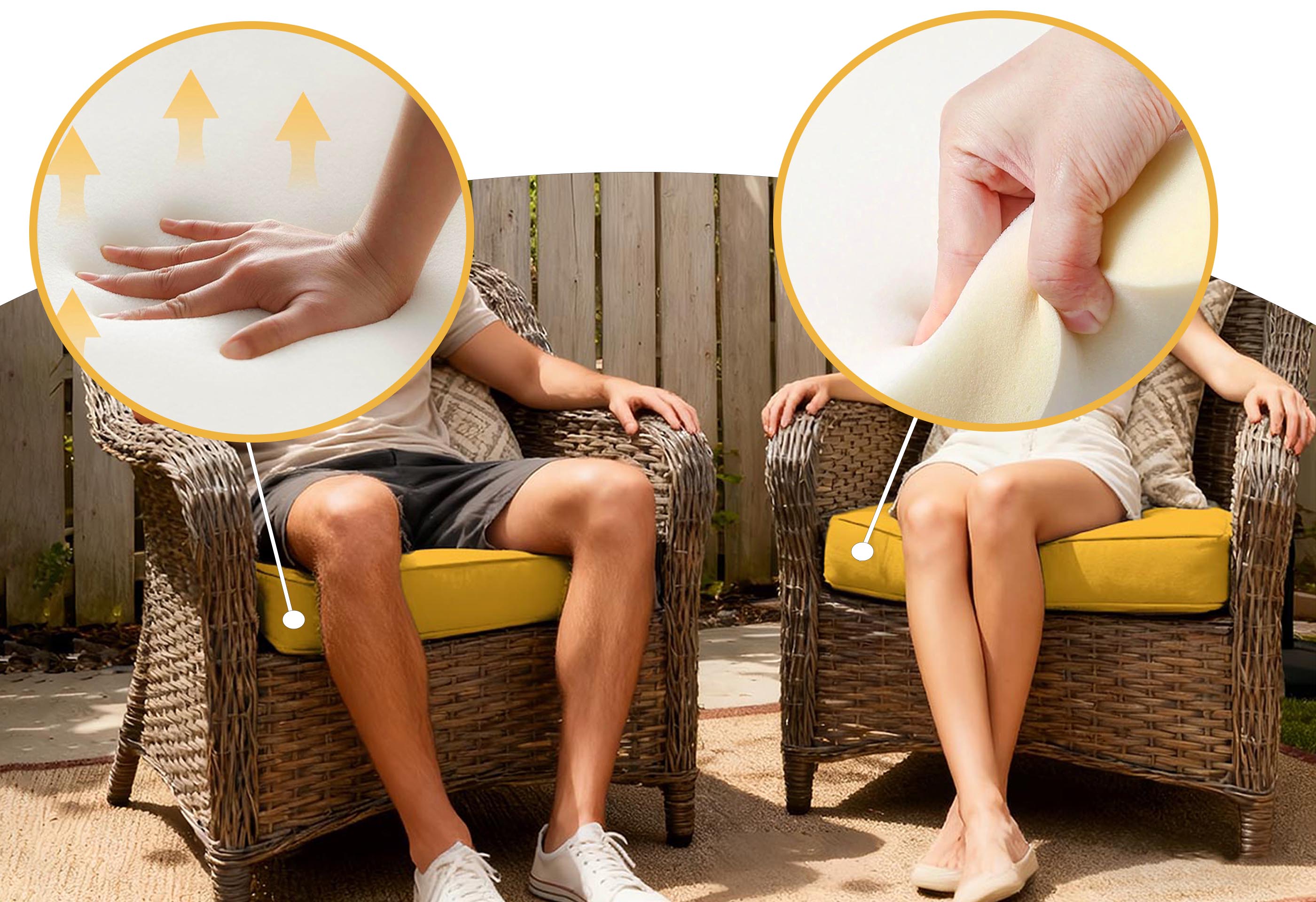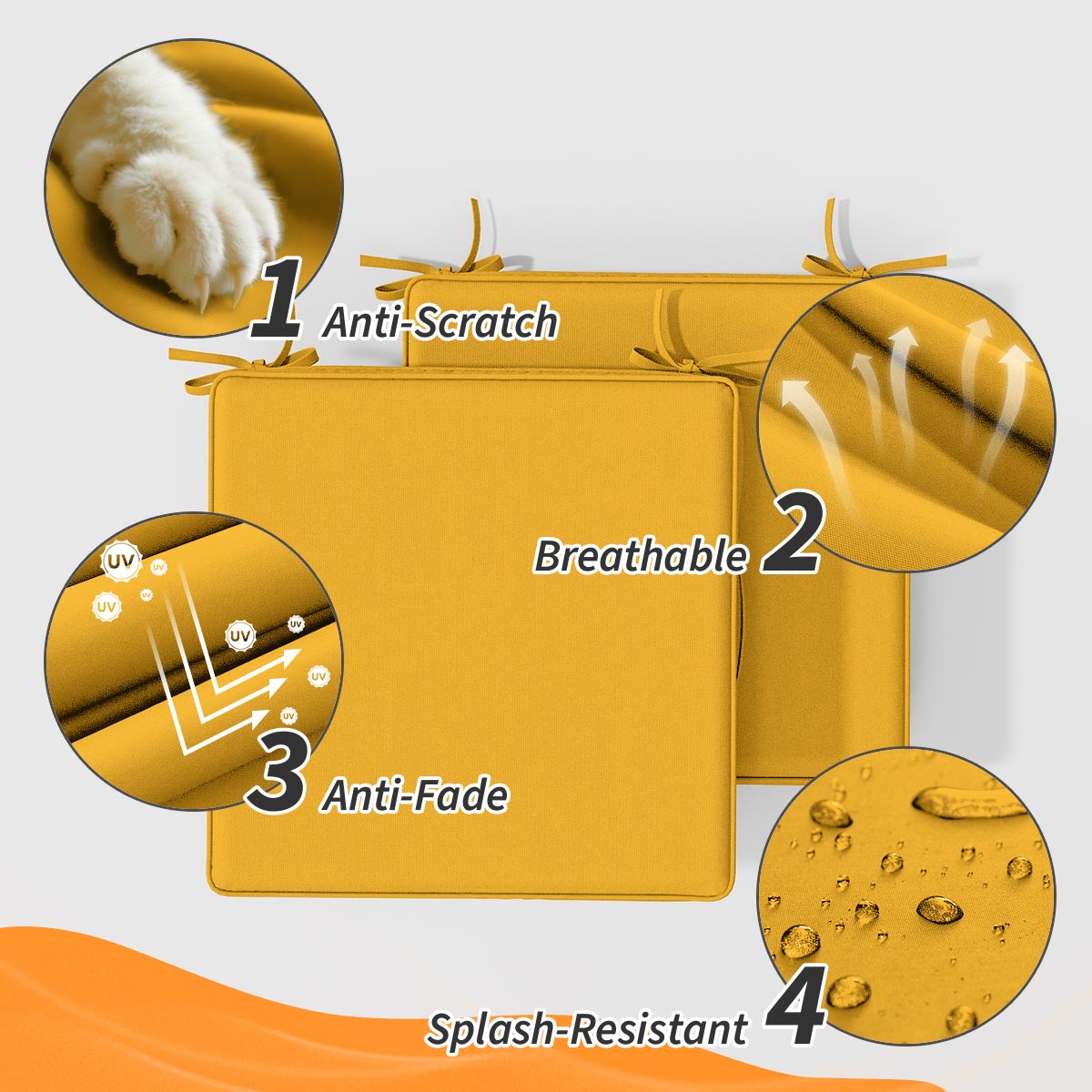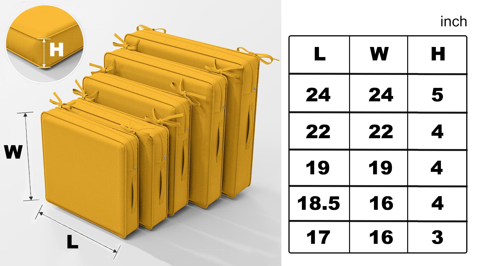 Bring comfort to your patio dining or garden seating with our plush seat pads. Each cushion features 3"/4"/5" thick padding for lasting support, water-resistant fabric for outdoor durability, and tie straps to keep it perfectly in place. Whether for morning coffee or evening gatherings, these cushions add both comfort and style to your outdoor living.