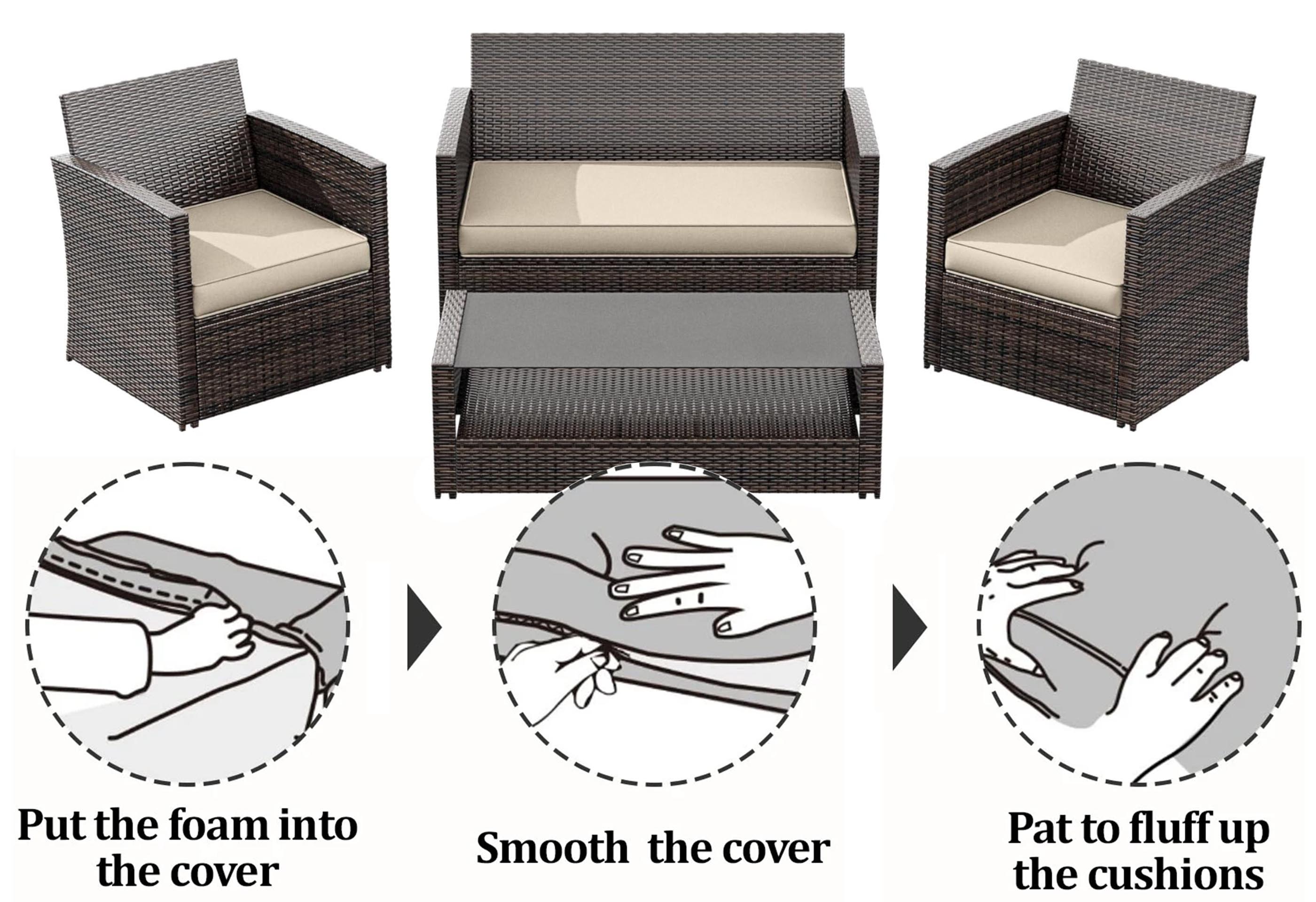 Attention: The patio cushion is vacuum sealed, after unpacking, squeeze it inward from both sides and pat for several times. Please allow 24-48 hours to regain fluffiness.