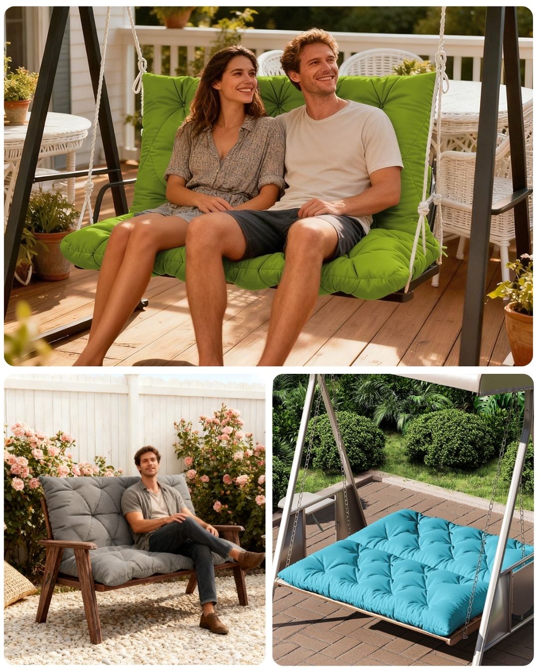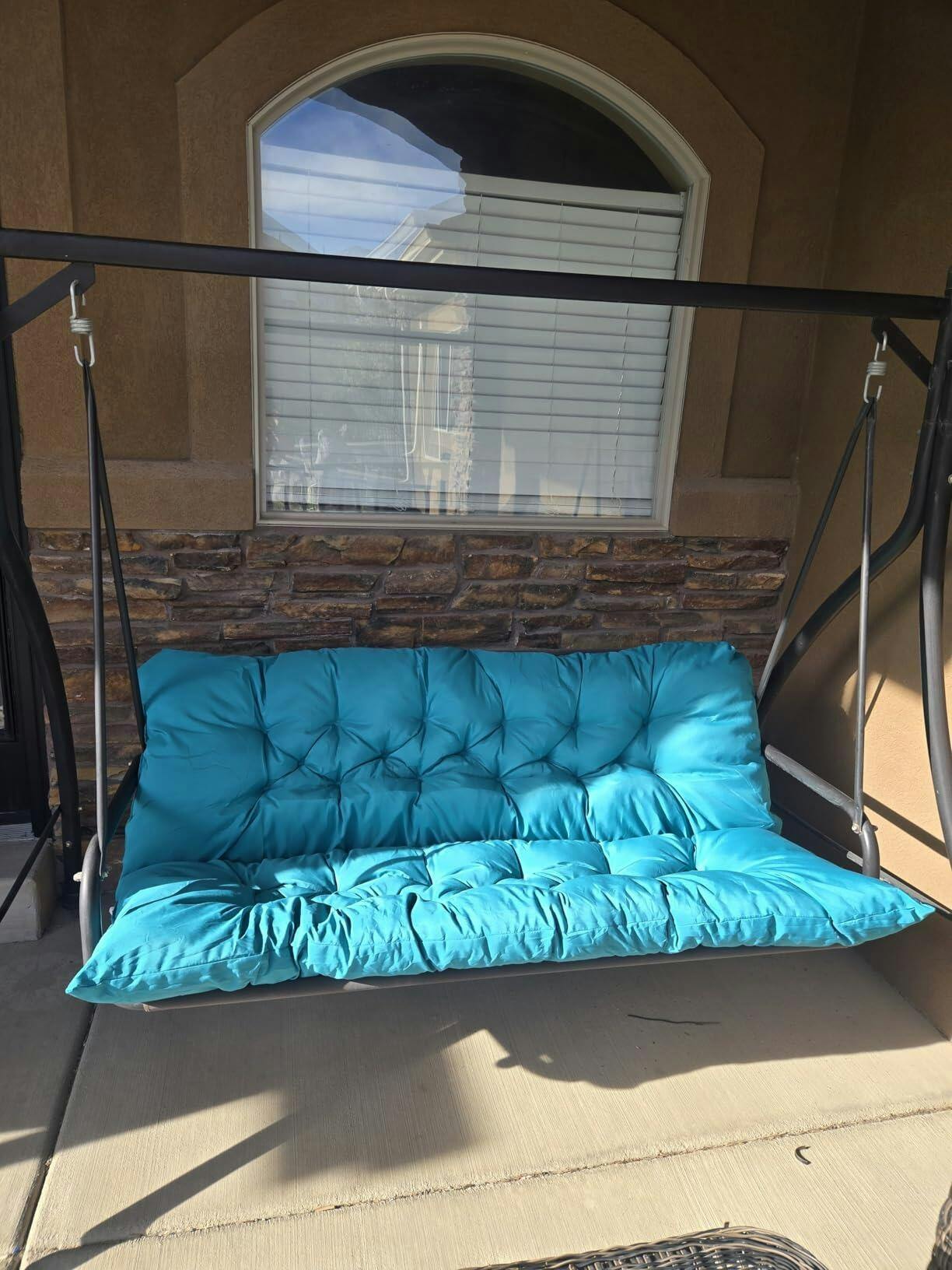Transform your porch swing into the coziest spot at home. This 2–3 seater cushion features a 5" thick design, secure tie straps, and fade-resistant fabric to handle the outdoors with ease. Sit back, sway, and enjoy pure comfort all day long.